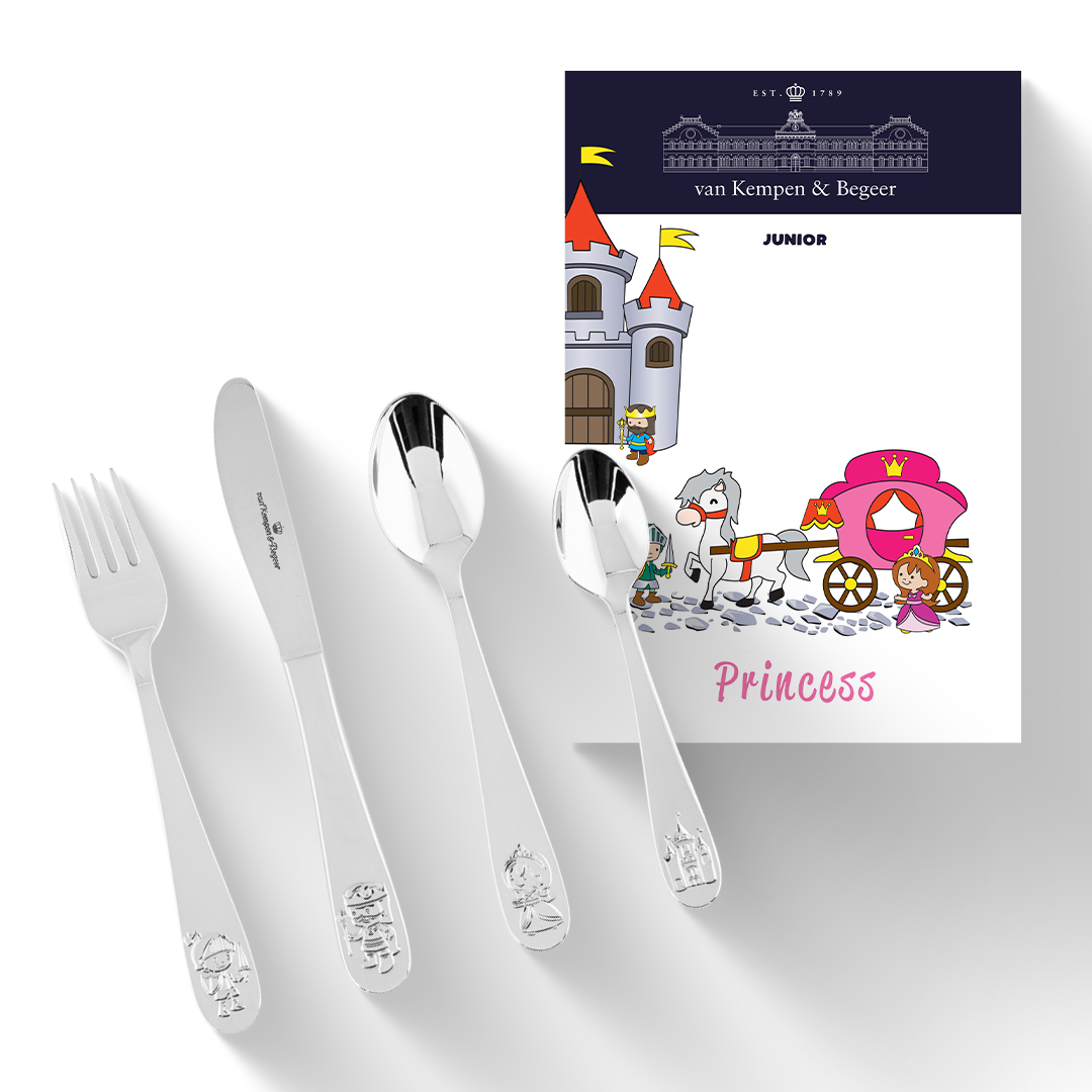 4-delig kinderbestek met een leuke afbeeldingen van kastelen en prinsessen
